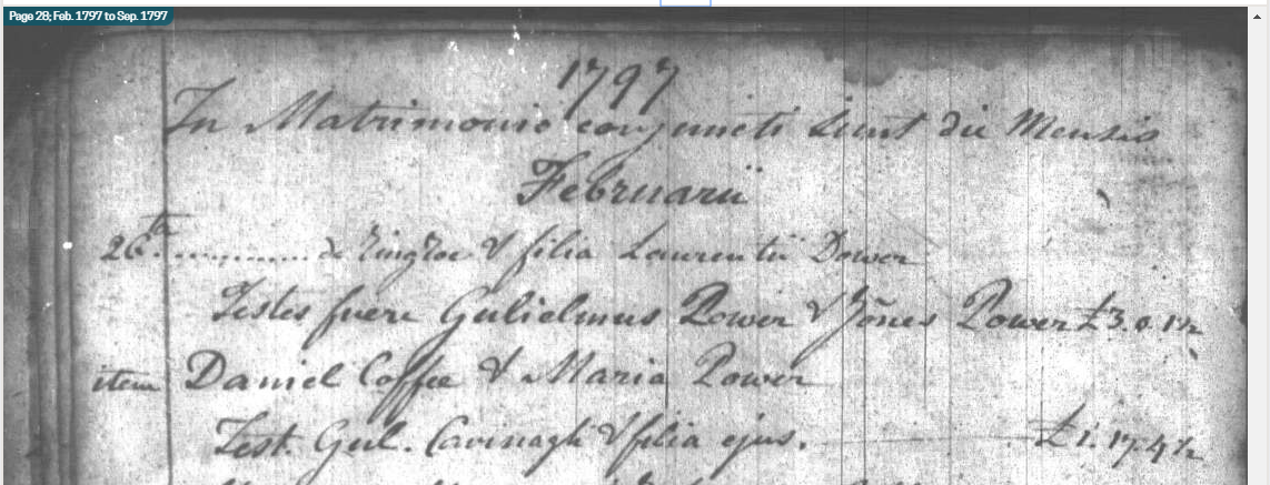 married there. The witnesses were William and John Power (see attached). While the entry is